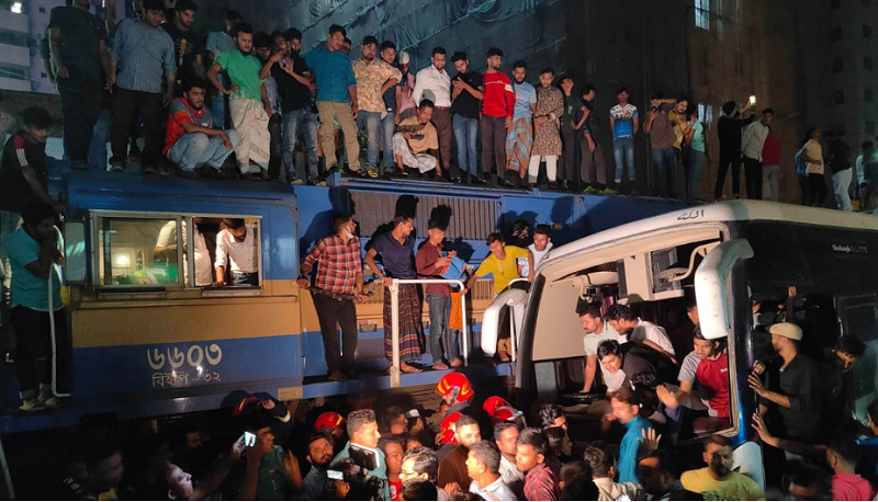 মালিবাগে বাস-ট্রেন সংঘর্ষ