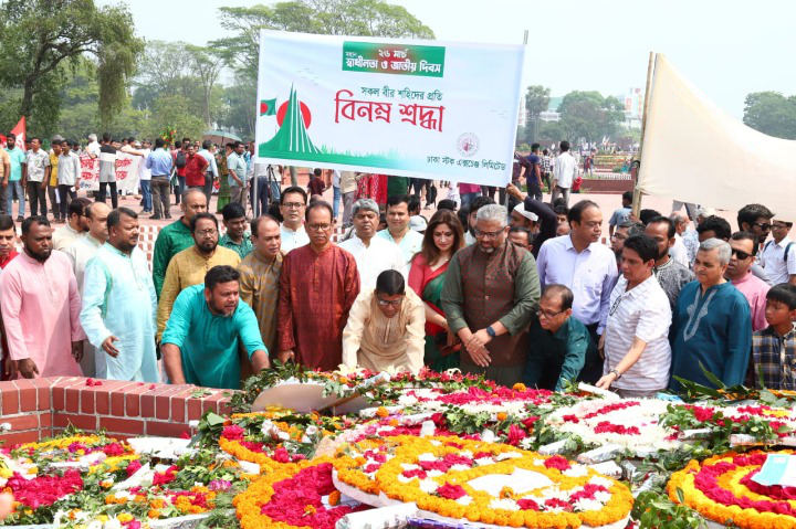 স্বাধীনতা ও জাতীয় দিবস স্মরণে আজ (২৬ মার্চ) সকালে ঢাকা স্টক এক্সচেঞ্জ লিমিটেড এর নব-নির্বাচিত চেয়ারম্যান অধ্যাপক ড. হাফিজ মুহম্মদ হাসান বাবুর নেতৃত্বে নব-নিযুক্ত পরিচালনা পর্ষদ ও ব্যবস্থাপনা কর্তৃপক্ষ সাভার জাতীয় স্মৃতি সৌধে সকল বীর শহিদের প্রতি পুষ্পার্ঘ্য অর্পন করে বিনম্র শ্রদ্ধা নিবেদন করেন৷