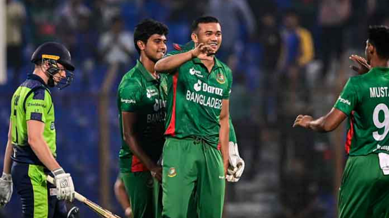 এরপর ৮ ওভারে ১০৪ রানের লক্ষ্য পেয়ে আইরিশরা ঝড়ো শুরু করলেও তাসকিনের দুর্দান্ত বোলিংয়ে বৃষ্টি আইনে ২২ রানে জিতেছে বাংলাদেশ। এই জয়ে তিন ম্যাচ সিরিজে ১-০ ব্যবধানে এগিয়ে গেছে স্বাগতিকরা।