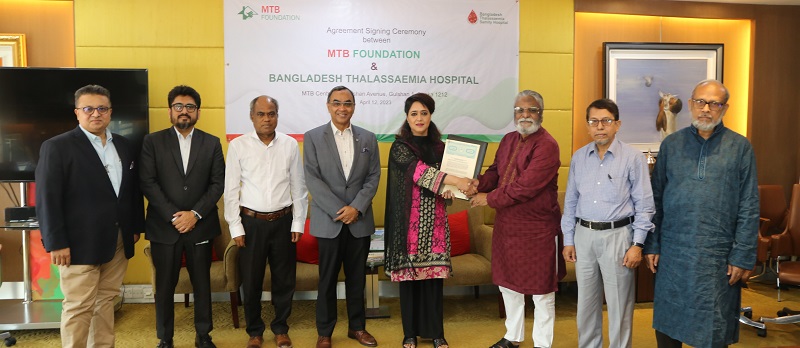 সম্প্রতি এমটিবি ফাউন্ডেশন ‘বাংলাদেশ থ্যালাসেমিয়া হাসপাতালের থ্যালাসেমিয়া রোগীদের স্বাস্থ্যসেবা সহায়তা প্রদান’ শীর্ষক প্রকল্পের জন্য বাংলাদেশ থ্যালাসেমিয়া হাসপাতালের সঙ্গে একটি চুক্তি স্বাক্ষর করেছে। এই প্রকল্পের অধীনে, এমটিবি ফাউন্ডেশন সুবিধাবঞ্চিত থ্যালাসেমিয়া রোগীদের চিকিৎসা ব্যয় বহনে বাংলাদেশ থ্যালাসেমিয়া হাসপাতালকে সহায়তা করবে।