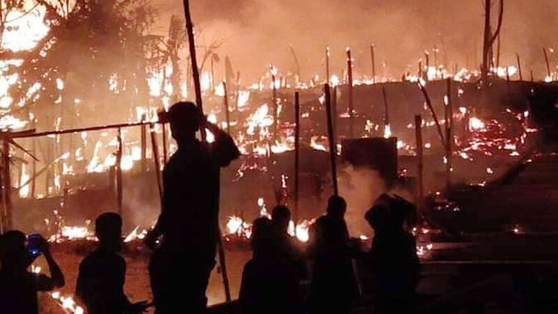 কক্সবাজারের টেকনাফের চাকমারখুল ২১ নম্বর রোহিঙ্গা ক্যাম্পে ভয়াবহ আগুন লেগেছে। সোমবার (২৪ এপ্রিল) রাত ৯টার দিকে এ অগ্নিকাণ্ডের ঘটনা ঘটে। ঘটনার পর থেকে ফায়ার সার্ভিসের দুটি ইউনিট আগুন নিয়ন্ত্রণের চেষ্টা করছে। ইতোমধ্যে ৩০টির বেশি ঘর পুড়ে গেছে বলে জানিয়েছেন রোহিঙ্গারা।