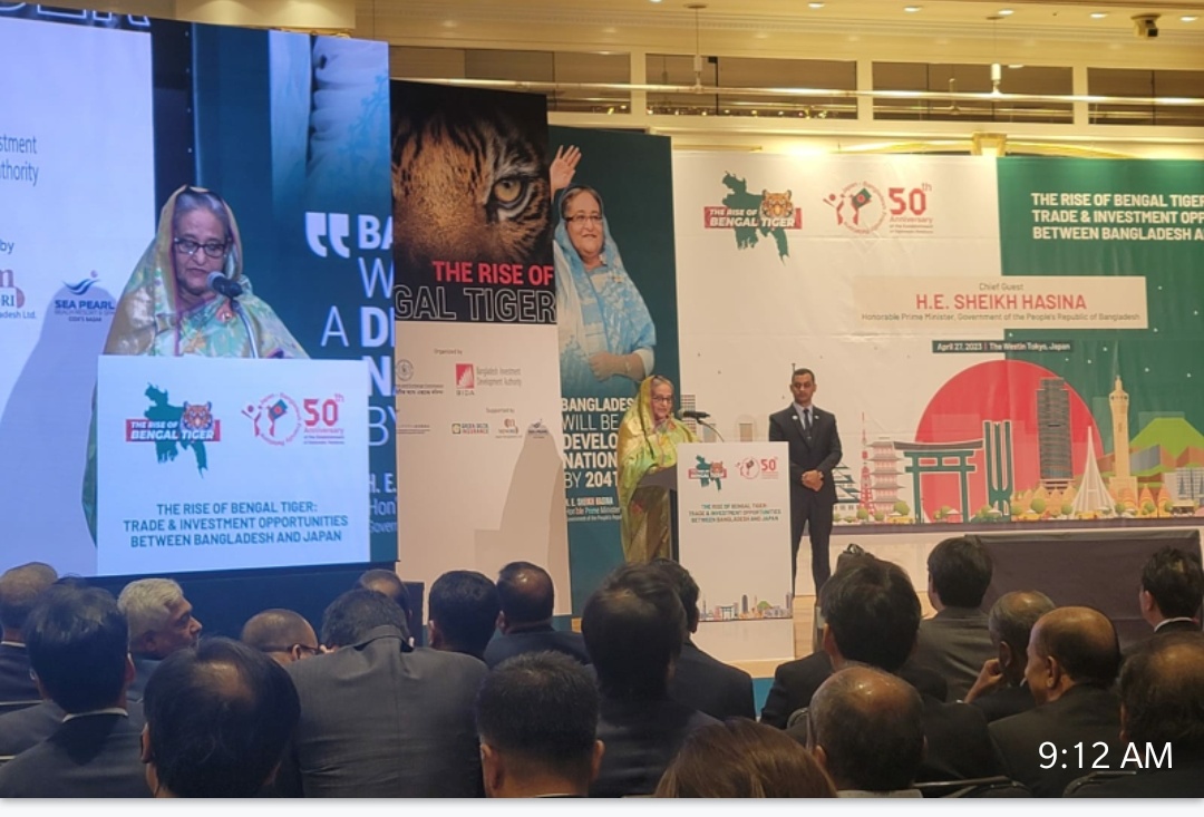 বাংলাদেশের ক্রমবর্ধমান অর্থনীতির কথা উল্লেখ করে শেখ হাসিনা বলেন, আইসিটি, ইলেকট্রনিক্স, অবকাঠামো, চামড়া, টেক্সটাইল, আতিথেয়তা ও পর্যটন, ভারী শিল্প, রাসায়নিক ও সার এবং এসএমইর মতো বিভিন্ন খাতে সুযোগ অনেক বেড়েছে। আমাদের সরকার ব্যবসা করার সাবলীল, সহজ এবং কার্যকর উপায়গুলো সহজতর করার জন্য যথাসাধ্য চেষ্টা করছে। বিদেশি বিনিয়োগের জন্য তাঁর সরকার ১০০টি বিশেষ অর্থনৈতিক অঞ্চল, হাই-টেক এবং সফটওয়্যার পার্ক নির্মাণ করছে। আমি জাপানি বিনিয়োগকারীদের আশ্বস্ত করতে চাই যে, বাংলাদেশ আপনাদের জন্য প্রস্তত, এবং সেখানে গেলে আপনাদের দুর্দান্ত অভিজ্ঞতা হবে। আপনারা ব্যবসার সুবিধার জন্য প্রয়োজনীয় সমস্ত সংস্থা এবং কাঠামো সুবিধার জন্য তৈরি করা হয়েছে। বাংলাদেশে জাপানি বিনিয়োগকারীদের সুবিধার্থে বিশেষকরে সরকারি-বেসরকারি যৌথ অর্থনৈতিক সংলাপের (পিপিইডি) মতো উচ্চ পর্যায়ের যৌথ প্ল্যাটফর্ম রয়েছে। সম্প্রতি ১১ এপ্রিল ২০২৩-এ অনুষ্ঠিত ৫ম পিপিইডি বৈঠকের ফলাফলকে বাংলাদেশ স্বাগত জানায়।