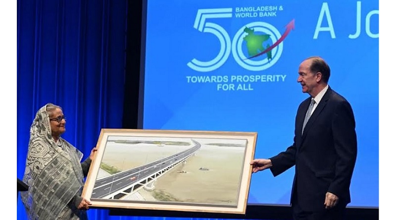 প্রধানমন্ত্রী শেখ হাসিনা উন্নয়নশীল দেশ হয়ে ওঠার পথে বাংলাদেশের মসৃণ উত্তরণ, পরবর্তীতে উচ্চ-মধ্যম আয়ের দেশ হিসেবে উত্তরণ লাভ ও ডেল্টা প্ল্যান-২১০০ বাস্তবায়নের জন্য বিশ্বব্যাংকের সহযোগিতা বৃদ্ধির আহ্বান জানিয়েছেন। সোমবার (১ এপ্রিল) বিশ্বব্যাংক সদর দপ্তরের প্রিস্টন অডিটোরিয়ামে অনুষ্ঠিত ‘বিশ্বব্যাংক-বাংলাদেশ অংশীদারিত্বের ৫০ বছরের প্রতিফলন’ শীর্ষক পূর্ণাঙ্গ অধিবেশনে ভাষণ দেওয়ার সময় প্রধানমন্ত্রী এ আহ্বান জানান। এসময় প্রধানমন্ত্রী বিশ্বব্যাংকের সামনে পাঁচটি সুনির্দিষ্ট পরামর্শ রেখেছেন যা বিশ্বব্যাংক ঋণদাতাদের বিবেচনায় নেওয়া উচিত।