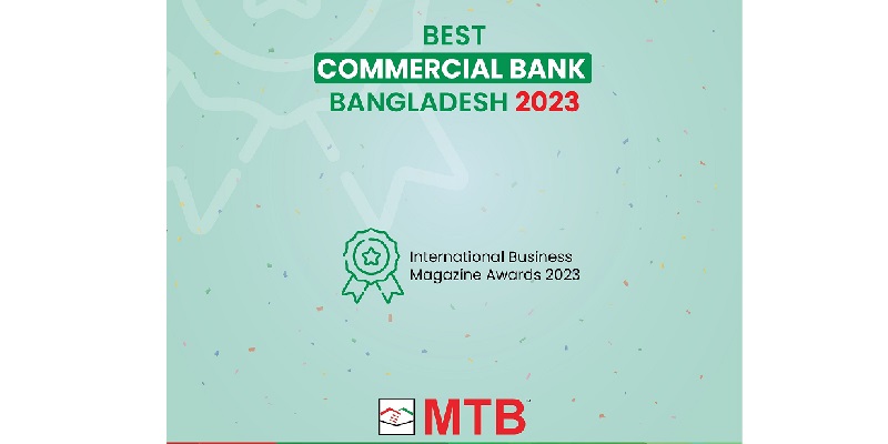 মিউচুয়াল ট্রাস্ট ব্যাংক লিমিটেড (এমটিবি) সম্প্রতি ইস্টারন্যাশনাল বিজনেস ম্যাগাজিন কর্তৃক মর্যাদাপূর্ণ ‘বেস্ট কমার্শিয়াল ব্যাংক ইন বাংলাদেশ ২০২৩’ উপাধিতে ভূষিত হয়েছে। পুরষ্কারটি এমটিবি’র অনুকরনীয় ব্যাংকিং কার্যক্রম, ব্যাংকের প্রতি গ্রাহক সকলের অবিচল আস্থা এবং ব্যাংকিং সেবার ক্ষেত্রে উদ্ভাবনী সমাধানের স্বীকৃতি স্বরূপ, যা বাংলাদেশের একটি শীর্ষস্থানীয় ব্যাংক হিসেবে এর অবস্থানকে মজবুত করে।