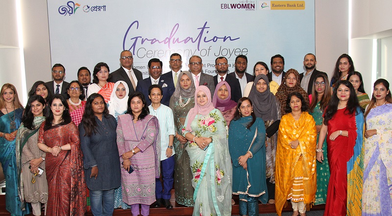 রাজধানীতে অবস্থিত বেসরকারী খাতের ইস্টার্ণ ব্যাংক লিমিটেডের (ইবিএল) নারী উদ্যোক্তা উন্নয়ন প্রোগ্রামের অধীনে ছয় মাসব্যাপী জয়ী গ্রাজুয়েশন কোর্সের প্রথম ব্যাচের সফল অংশগ্রহণকারীদের মাঝে সনদ বিতরণ করা হয়। ইবিএল এবং প্রেরণা ফাউন্ডেশন যৌথভাবে এই কোর্সের আয়োজন করে।