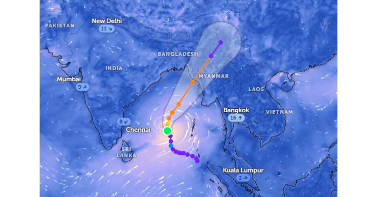 এদিকে ভারতীয় আবহাওয়া বিভাগের ১৬ নম্বর বুলেটিনে বলা হয়, বঙ্গোপসাগরের মধ্য ও দক্ষিণ-পূর্বে সৃষ্ট অতি প্রবল ঘূর্ণিঝড়টি ঘণ্টায় ৮ কিলোমিটার গতিতে উত্তর-উত্তরপূর্ব দিকে এগিয়ে যাচ্ছে। ঘূর্ণিঝড়টি ভারতের আন্দামানের রাজধানী পোর্ট ব্লেয়ার থেকে ৫৬৫ কিলোমিটার, বাংলাদেশের কক্সবাজারের দক্ষিণ-দক্ষিণপশ্চিম উপকূল থেকে ৭৬০ কিলোমিটার ও মিয়ানমারের রাখাইন রাজ্যের রাজধানী সিত্তে থেকে ৬৯০ কিলোমিটার দূরে অবস্থান করছে।