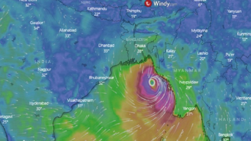 কক্সবাজার-উত্তর মিয়ানমার উপকূল অতিক্রমরত অতি প্রবল ঘূর্ণিঝড় ‘মোখা’র কেন্দ্র আজ বেলা ৩টা নাগাদ উপকূল এবং সম্পূর্ণ ঘূর্ণিঝড়টি সন্ধ্যা নাগাদ মিয়ানমারের সিটুয়ের কাছ দিয়ে কক্সবাজার উত্তর মিয়াানমার উপকূল অতিক্রম সম্পন্ন করতে পারে। অতি প্রবল ঘূর্ণিঝড় ‘মোখা’ বর্তমানে কক্সবাজার ও উত্তর মিয়ানমার উপকূল অতিক্রম করছে।