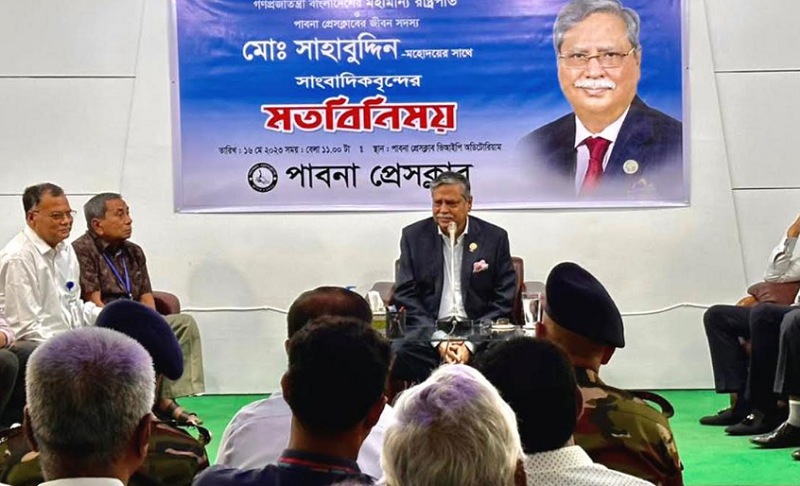 সকালে প্রেসক্লাবে এসে পৌঁছালে তাকে স্বাগত জানান উপস্থিত সাংবাদিকরা। পরে ক্লাবের ভিআইপি মিলনায়তনে সাংবাদিকদের সঙ্গে মতবিনিময় করেন। এ সময় রাষ্ট্রপতি মো. সাহাবুদ্দিন প্রেসক্লাবে তার নানা স্মৃতিময় দিনগুলোর কথা তুলে ধরেন। তিনি বলেন, আমি পাবনা প্রেসক্লাবের ২২তম সদস্য, আবার দেশেরও ২২তম রাষ্ট্রপতি। আমি দৈনিক বাংলার বাণীতে জেলা সংবাদদাতা হিসেবে কাজ করেছি। প্রেসক্লাবের খোলা ছাদে বসে সহকর্মীদের সঙ্গে আড্ডা দিয়েছি। এ সময় ছাত্র রাজনীতি করতে গিয়ে জেলে কাটানো দিনগুলোর কথাও মনে করেন রাষ্ট্রপতি।