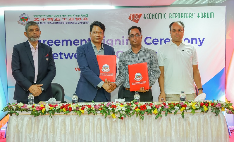 ইকোনমিক রিপোর্টার্স ফোরাম (ইআরএফ) এবং বাংলাদেশ চায়না চেম্বার অফ কমার্স অ্যান্ড ইন্ডাস্ট্রি (বিসিসিসিআই) এর মধ্যে একটি চুক্তি স্বাক্ষরিত হয়েছে।  শনিবার (২০ মে) রাজধানীর বিসিসিআই কার্যালয়ে সাংবাদিকতা পুরস্কারের এই চুক্তিটি স্বাক্ষরিত হয়।