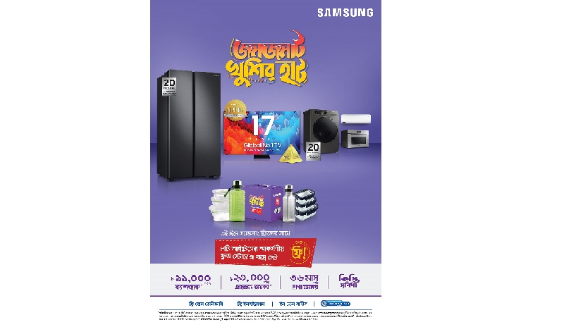 আসন্ন ঈদ-উল-আযহার আনন্দকে আরো বাড়িয়ে তুলতে গ্রাহকদের জন্য দূর্দান্ত সব অফার নিয়ে এসেছে শীর্ষ অ্যাপ্লায়েন্স ব্র্যান্ড স্যামসাংয়ের বিশেষ ঈদ ক্যাম্পেইন ‘জমজমাট খুশির হাট’ আকর্ষণীয় ডিসকাউন্ট, ক্যাশব্যাক, গিফট বক্স এবং এক্সচেঞ্জ অফার-সহ নানা সুবিধা দিয়ে গ্রাহকদের ঈদের প্রস্তুতিকে আরো সুন্দর করে তুলতে চালু হওয়া ক্যাম্পেইনটি চলবে ৩০ জুন পর্যন্ত।