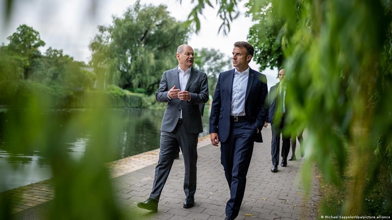 রাস্তায় হাঁটছেন শলৎস ও মাক্রোঁ