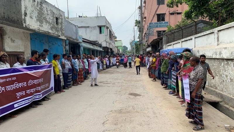 বক্তারা আরো বলেন, এই অঞ্চলের উৎপাদিত তামাক বিশ্বের বিভিন্ন দেশে রপ্তানি হয়। ফলে আমাদের দেশে বিপুল পরিমান বৈদেশিক মূদ্রা অর্জিত হয়। এতে দেশের অর্থনীতিতে রেমিটেন্স যুক্ত হয়। কিন্তু বহুজাতিক কোম্পনীর একটি প্রতিষ্ঠান ব্রিটিশ আমেরিকান টোব্যাকো এদেশের সাধারণ গরিব তামাক চাষীদের দারিদ্রতার সুযোগ নিয়ে সুদের মাধ্যমে দাদণ বা ঋণ দিয়ে একক ভাবে তামাক ক্রয় করে আসছে। তামাক চাষীদের ঋণের নামে ব্রিটিশ আমেরিকার টোব্যাকোর সুদের ব্যবসা বন্ধ করতে হবে। তামাক চাষীদের জন্য সরকারি কৃষি ঋণের ব্যবস্থা হলে আমরা ব্রিটিশ আমেরিকার টোব্যাকোর নিকট তামাক বিক্রি বন্ধ করে দিব। জননেত্রী শেখ হাসিনার বিরুদ্ধে আমেরিকা ব্রিটিশ নানা ষড়যন্ত্রে লিপ্ত। আমরা তামাক চাষীরা প্রধানমন্ত্রীর পাশে থেকে সকল ষড়যন্ত্র মোকাবেলা করতে প্রস্তুত।