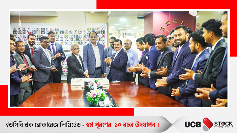 পুঁজিবাজারের তালিকাভুক্ত কোম্পানি ইউসিবি স্টক ব্রোকারেজ লিমিটেড ১০ বছরে পদার্পণ করেছে। এ উপলক্ষে সোমবার (১৯ জুন) প্রতিষ্ঠানটির প্রধান কার্যালয়ে একটি অনুষ্ঠানের আয়োজন করা হয়।