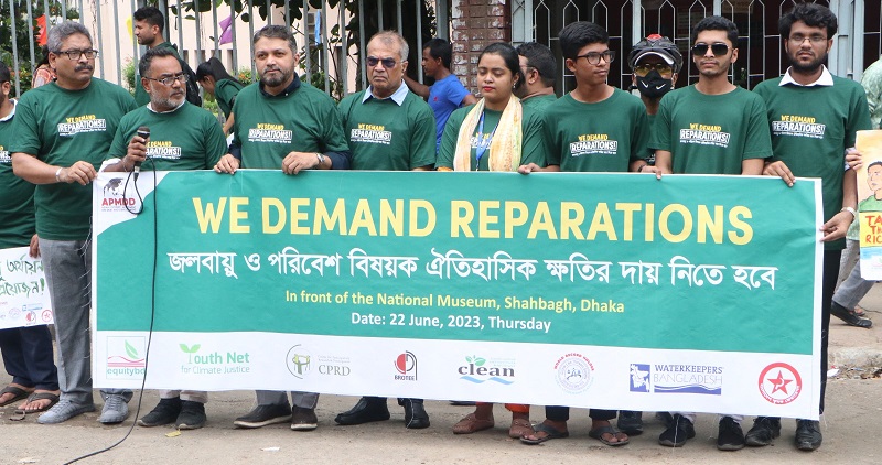 এশিয়া মহাদেশের অন্যান্য দেশের সঙ্গে বাংলাদেশেও “We Demand for Reparations” (জলবায়ু ও পরিবেশ বিষয়ক ঐতিহাসিক ক্ষতির দায় নিতে হবে) শিরোনামে শিল্পোন্নত দেশসমূহের কাছে তাদের অনিয়ন্ত্রিত শিল্পায়নের ফলে সৃষ্ট জলবায়ু সংকটের প্রভাব প্রশমনে ক্ষতিপূরণ এর দাবী জানায়। পুরো এশিয়াতে এই সমাবেশ আয়োজন করেছে এশিয়া এনার্জি নেটওয়ার্ক এবং এপিএমডিডি (এশিয়ান পিপল’স মুভমেন্ট ফর ডেট এন্ড ডেভেলপমেন্ট)।