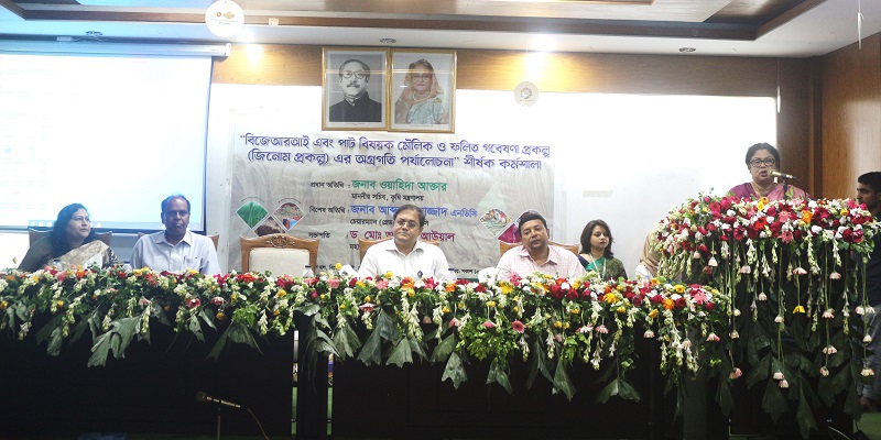 পাট বিষয়ক মৌলিক ও ফলিত গবেষণা প্রকল্প (জেনোম) ও বাংলাদেশ পাট গবেষণা ইনস্টিটিউটের গবেষণা কার্যক্রমের অগ্রগতি পর্যালোচনা শীর্ষক একটি কর্মশালা অনুষ্ঠিত হয়েছে। কর্মশালাটি রাজধানীর মানিক মিয়া এভিনিউ এ অবস্থিত বাংলাদেশ পাট গবেষণা ইনস্টিটিউট (বিজেআরআই) এর সম্মেলন কক্ষে আজ সোমবার (২৬ জুন) অনুষ্ঠিত হয়।