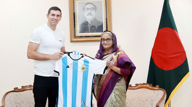 বাংলাদেশ সফরে এসে প্রধানমন্ত্রী শেখ হাসিনার সঙ্গে সৌজন্য সাক্ষাৎ করেছেন আর্জেন্টিনার বিশ্বজয়ী গোলরক্ষক এমি মার্তিনেজ। সোমবার (৩ জুলাই) বেলা দুইটায় তিনি প্রধানমন্ত্রীর সঙ্গে সৌজন্য সাক্ষাৎ করেন।