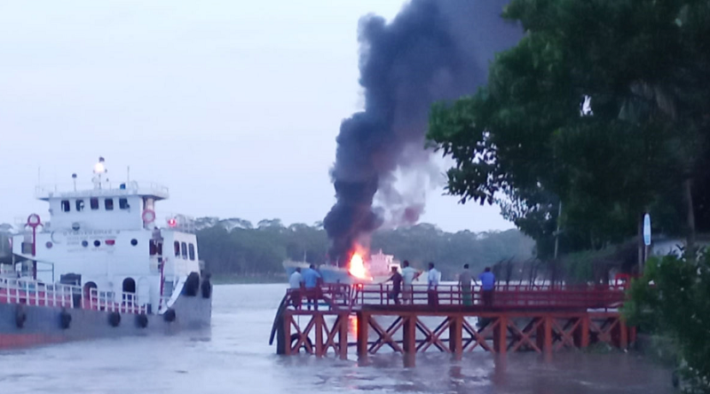সোমবার (৩ জুলাই) সন্ধ্যা ৬টার দিকে শহরের পৌরসভার খেয়াঘাট সংলগ্ন সুগন্ধা নদীর মধ্যে এ ঘটনা ঘটেছে। ওই স্থানে সাগর নন্দিনী-২ ও সাগর নন্দিনী-৪ নোঙ্গর করা ছিল।