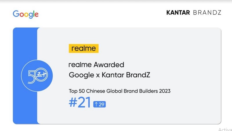 তরুণদের পছন্দের ব্র্যান্ড রিয়েলমি গুগল ও ক্যান্টার কর্তৃক প্রকাশিত ক্যান্টার ব্র্যান্ডজ চাইনিজ গ্লোবাল ব্র্যান্ড বিল্ডার্স ২০২৩ এর শীর্ষ ৫০ এর মধ্যে ২১ তম অবস্থান অর্জন করেছে। গত বছরের তুলনায় ২৯ ধাপ এগিয়েছে ব্র্যান্ডটি।