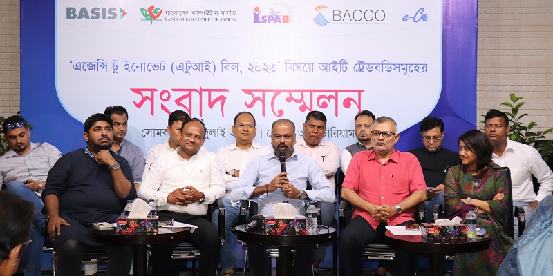 সম্প্রতি মহান জাতীয় সংসদে পাশকৃত এজেন্সি টু ইনোভেট (এটুআই) বিল, ২০২৩ বিষয়ে প্রয়োজনীয় সংশোধন ও পরিমার্জনের দাবিতে দেশের তথ্যপ্রযুক্তি বিষয়ক পাঁচটি বাণিজ্য সংগঠন সম্মিলিতভাবে একটি সংবাদ সম্মেলনের আয়োজন করে।