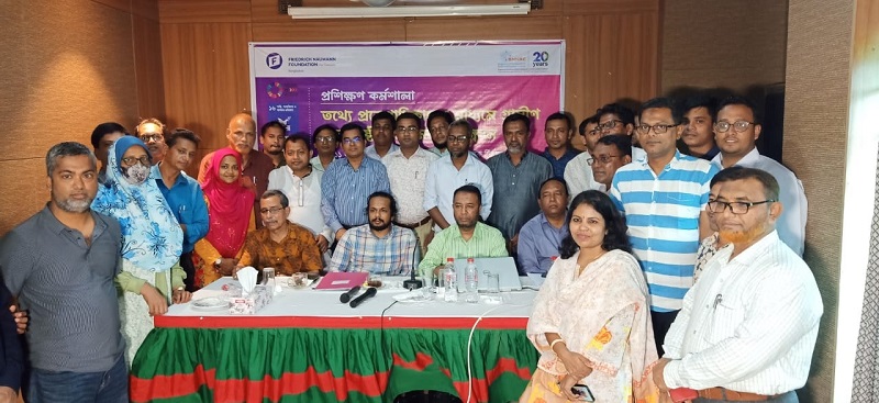 মঙ্গলবার (১১ জুলাই) দিনব্যাপী নাইস গেস্ট হাউজের কনফারেন্স রুমে বাংলাদেশ এনজিওস নেটওয়ার্ক ফর রেডিও এন্ড কমিউনিকেশন (বিএনএনআরসি), ফ্রেডরিখ নিউম্যান ফাউন্ডেশন ফর ফ্রিডম বাংলাদেশ’র (এফএনএফ বাংলাদেশ) সহায়তায় অনুষ্ঠিত এই প্রশিক্ষণে মোট ৩৫জন জাতীয় ও আঞ্চলিক/স্থানীয় পর্যায়ের দৈনিক পত্রিকা, অনলাইন নিউজ পোর্টাল ও টেলিভিশন চ্যানেল ও জেলা প্রেসক্লাবের প্রতিনিধি, জেলা তথ্য কর্মকর্তা, জেলা প্রাথমিক শিক্ষা কর্মকর্তা, উপজেলা যুব উন্নয়ন কর্মকর্তা, শিশু বিষয়ক কর্মকর্তা, জেলা কালচারাল অফিসার অফিসার, দুর্নীতি দমন প্রতিরোধ কমিটি’র সদস্য, শিক্ষক, সাংস্কৃতিক কর্মী, আইনজীবী এবং নাগরিক সমাজ সংগঠনের প্রতিনিধি অংশগ্রহণ করেন।