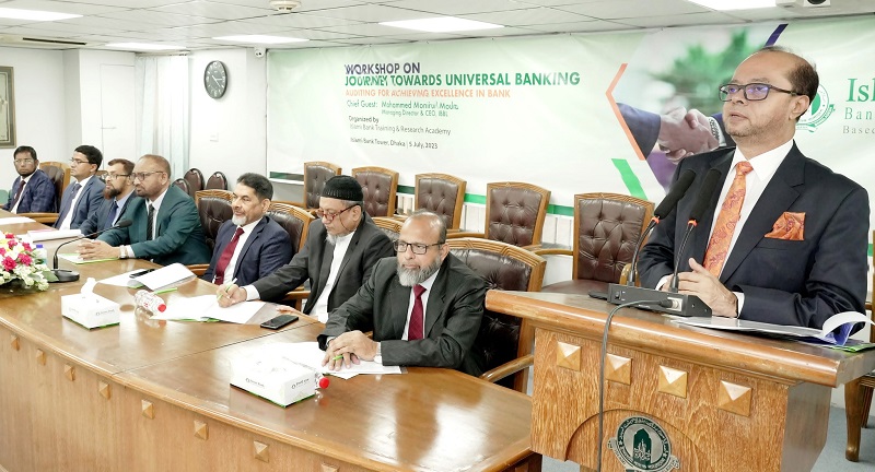 ইসলামী ব্যাংক ট্রেনিং অ্যান্ড রিসার্চ একাডেমি’র (আইবিটিআরএ) উদ্যোগে সম্প্রতি ইসলামী ব্যাংক টাওয়ারে “জার্নি টুয়ার্ডস ইউনিভার্সেল ব্যাংকিং: অডিটিং ফর অ্যাচিভিং এক্সিলেন্স ইন ব্যাংক” শীর্ষক দিনব্যাপী এক কর্মশালার আয়োজন করা হয়।