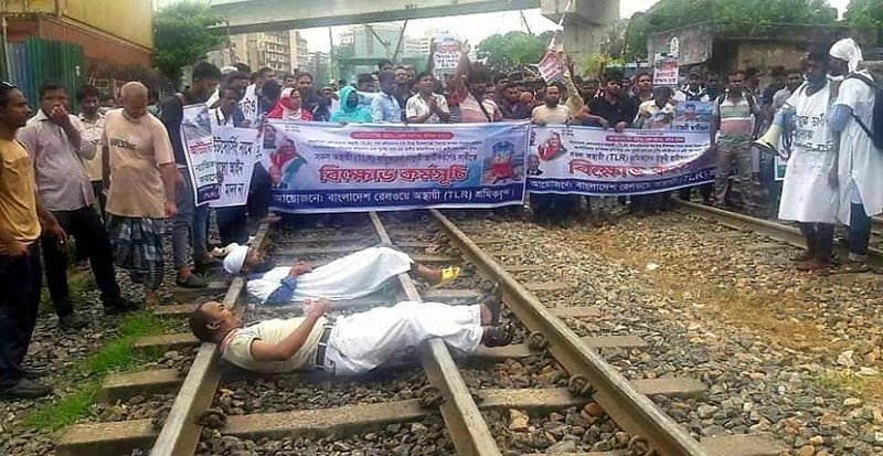 জানা গেছে, বাংলাদেশ রেলওয়েতে নিয়োগ পাওয়া অস্থায়ী শ্রমিকদের (টিএলআর) চাকরি ফেরত দেওয়া, স্থায়ীকরণ, আউটসোর্সিং প্রথা বাতিল করা এবং নিয়োগবিধি ২০২০ সংশোধন করে আগের মতো চতুর্থ শ্রেণির কর্মচারীদের অষ্টম শ্রেণি পাস বহাল রাখার দাবিতে ট্রেন আটকে অবস্থান কর্মসূচি পালন করছেন অস্থায়ী শ্রমিকরা। দাবি না মানা পর্যন্ত আন্দোলন চালিয়ে যাবেন বলেও হুঁশিয়ারি দিয়েছেন তারা।