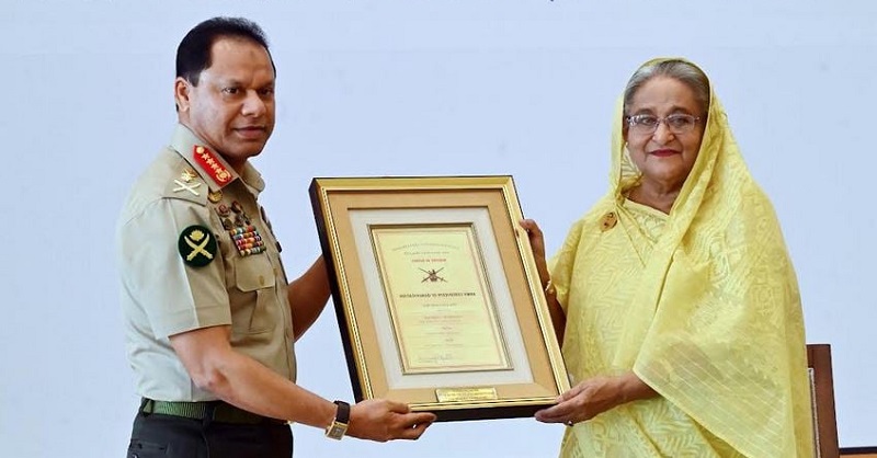 বাংলাদেশ সেনাবাহিনীকে দেশের স্বাধীনতা ও সার্বভৌমত্বের অতন্ত্র প্রহরী হিসেবে আখ্যায়িত করে- সরকারপ্রধান বলেন, বাংলাদেশ শান্তিতে বিশ্বাসী বলে কারও সঙ্গে যুদ্ধে জড়াতে চায় না। শান্তিপূর্ণ পরিবেশ উন্নয়নের পূর্বশর্ত। বাংলাদেশ সেনাবাহিনীর প্রশংসা করে শেখ হাসিনা বলেন, সেনাবাহিনী যে কোনো দুর্যোগ ও সংকটময় সময়ে জনগণের পাশে দাঁড়িয়ে প্রশংসনীয় ভূমিকা পালন করছে। আমাদের দেশপ্রেমিক সেনাবাহিনী সব সময় দেশের মানুষের পাশে আছে।
