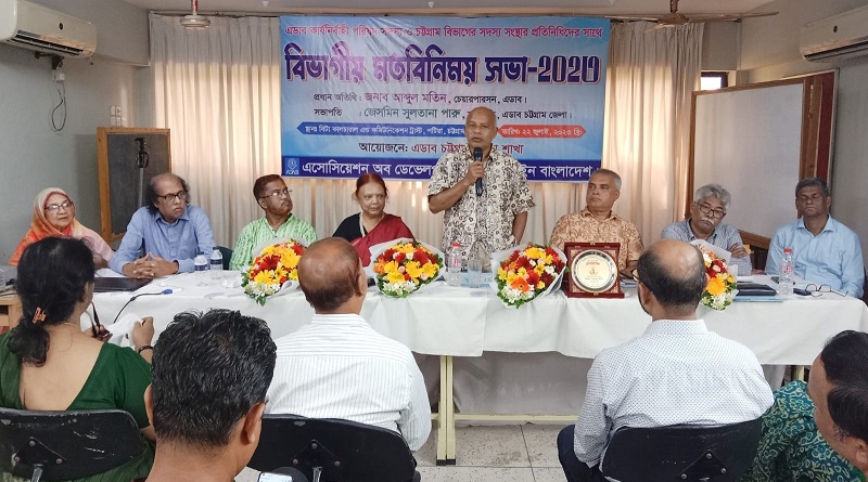 এডাব কেন্দ্রিয় নির্বাহী সদস্য ও চট্টগ্রাম জেলা কমিটির সভাপতি জেসমিন সুলতানা পারু‘র সভাপতিত্বে অনুষ্ঠিত বিভাগীয় মতবিনিময় সভায় প্রধান অতিথি হিসেবে উপস্থিত ছিলেন এডাব চেয়ারপারসন আব্দুল মতিন। অনুষ্ঠানে বিশেষ অতিথি ছিলেন এডাব‘র কোষাধক্ষ্য মাসুদা ফারুক রত্না,  বিটা‘র নির্বাহী পরিচালক শিশির দত্ত, ক্যাব কেন্দ্রিয় কমিটির ভাইস প্রেসিডেন্ট ও এডাব কার্যনির্বাহী পরিষদের সাবেক সদস্য এস এম নাজের হোসাইন, ইপসা‘র প্রধান নির্বাহী পরিচালক ও এডাব কার্যনির্বাহী পরিষদের সাবেক সদস্য মোঃ আরিফুর রহমান এবং এডাব‘র পরিচালক একেএম জসীম উদ্দীন।