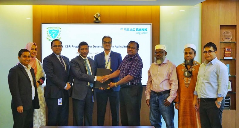 ব্র্যাক ব্যাংকের ডেপুটি ম্যানেজিং ডিরেক্টর অ্যান্ড সিওও মো. সাব্বির হোসেন এবং বাংলাদেশ কৃষি বিশ্ববিদ্যালয়ের ব্যুরো অব সোসিওইকোনমিক রিসার্স অ্যান্ড ট্রেইনিংয়ের চেয়ারম্যান ও ডিন ড. খন্দকার মোঃ মোস্তাফিজুর রহমান চুক্তিতে স্বাক্ষর করেন। কৃষিবিদ্যা বিভাগের অধ্যাপক ড. আহমেদ খায়রুল হাসান, বাংলাদেশ কৃষি বিশ্ববিদ্যালয়ের এগ্রি বিজনেস অ্যান্ড মার্কেটিং বিভাগের ড. মোঃ সালাউদ্দিন পলাশ এ সময় উপস্থিত ছিলেন।