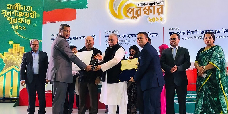 মঙ্গলবার (২৫ জুলাই) রাজধানীর বঙ্গবন্ধু আন্তর্জাতিক সম্মেলন কেন্দ্রে আয়োজিত এক অনুষ্ঠানে স্বরাষ্ট্রমন্ত্রী আসাদুজ্জামান খানের কাছ থেকে পুরস্কার ট্রফিটি গ্রহণ করেন ইবিএল সিকিউরিটিজের ব্যবস্থাপনা পরিচালক মোঃ সাঈয়েদুর রহমান।