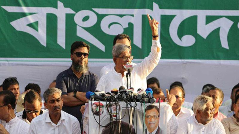 মির্জা ফখরুল বলেন, এই সরকার সব কিছু ধ্বংস করে দিয়েছে। তারা নির্বাচন ব্যবস্থা শেষ করে দিয়েছে। এদের অধীনে আর কোনো নির্বাচন হবে না। দফা এক দাবি এক, শেখ হাসিনার পদত্যাগ। পদত্যাগ করতে হবে, সংসদ বিলুপ্ত করে নির্দলীয় ও নিরপেক্ষ সরকারের অধীনে নির্বাচন দিতে হবে।