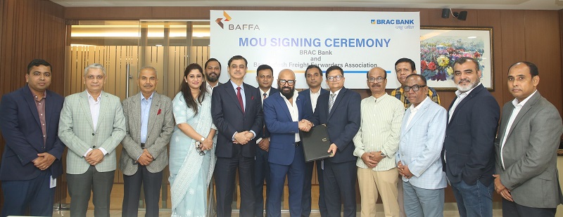 ফ্রেইট ফরওয়ার্ডিং খাতে প্রবৃদ্ধি এবং উদ্ভাবনকে ত্বরান্বিত করতে বাংলাদেশ ফ্রেইট ফরওয়ার্ডারস অ্যাসোসিয়েশনের (বিএএফএফএ) সঙ্গে একটি চুক্তি স্বাক্ষর করেছে ব্র্যাক ব্যাংক।