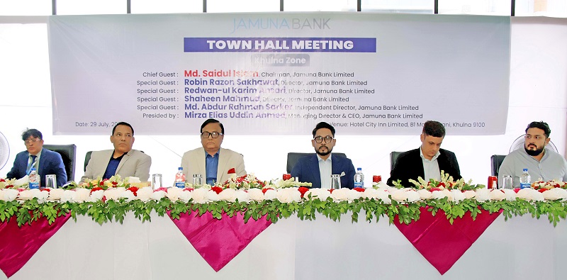 যমুনা ব্যাংক লিমিটেডের গ্রাহক সন্তুষ্টি ও ব্যাংকিং কার্যক্রম সম্প্রসারনের লক্ষ্যে খুলনা অঞ্চলের শাখা ব্যবস্থাপকদের সঙ্গে নিয়ে খুলনায় এক অভিজাত হোটেলে “টাউন হল মিটিং” অনুষ্ঠিত হয়।
