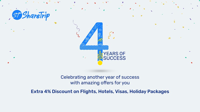 দেশের শীর্ষস্থানীয় ট্রাভেল টেক প্রতিষ্ঠান শেয়ারট্রিপ চার বছরে পদার্পন করেছে। আনন্দের এই মুহূর্তকে সকল গ্রাহকদের সঙ্গে উদযাপন করতে সব ধরনের সেবার ক্ষেত্রে মাসব্যাপী আকর্ষণীয় ছাড়ের অফারসহ দুর্দান্ত ক্যাম্পেইন নিয়ে এসেছে শেয়ারট্রিপ।