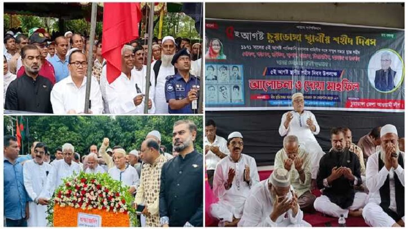 সম্প্রতি চুয়াডাঙ্গায় স্থানীয় শহীদ দিবস উপলক্ষে আট জন বীর শহীদের স্মৃতিসৌধ চত্ত্বরে, শহীদ বেদীতে শ্রদ্ধাঞ্জলি ও জাতীয় পতাকার উত্তোলনের আয়োজন করে চুয়াডাঙ্গা জেলা আওয়ামী লীগ। পরে এক আলোচনা সভা ও দোয়া মাহফিল আয়োজন করা হয়।