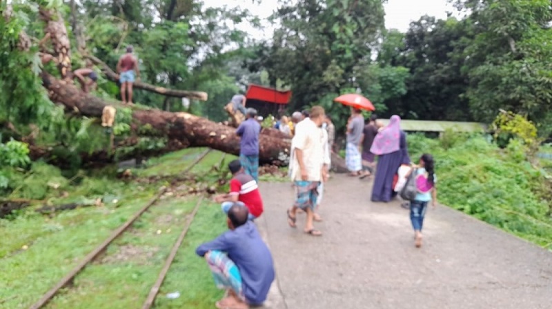 প্রত্যক্ষদর্শী গোলাম রহমান জানায়, শহরের মাইজদী বাজারের পূর্ব দিকে মাইজদী রেল স্টেশনের ফ্ল্যাটফর্মের পশ্চিম পাশের একটি বিশাল আকৃতির কড়ই গাছ ফ্ল্যাটফর্ম ও রেল লাইনের ওপর দিয়ে পূর্ব দিকে উপড়ে পড়ে। এতে পুরো রেল লাইন বন্ধ হয়ে যায়।