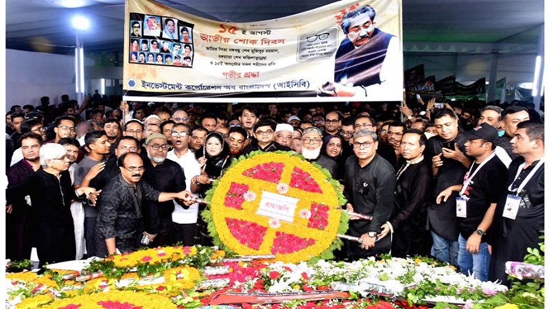জাতির পিতা বঙ্গবন্ধু শেখ মুজিবুর রহমানের ৪৮তম শাহাদতবার্ষিকী ও ১৫ আগস্ট জাতীয় শোক দিবস উপলক্ষে ইনভেস্টমেন্ট কর্পোরেশন অব বাংলাদেশ’র (আইসিবি) পক্ষ থেকে ধানমন্ডির ৩২ নম্বর রোডে বঙ্গবন্ধুর প্রতিকৃতিতে পুষ্পার্ঘ্য অর্পণের মাধ্যমে গভীর শ্রদ্ধা জ্ঞাপন করা হয়।