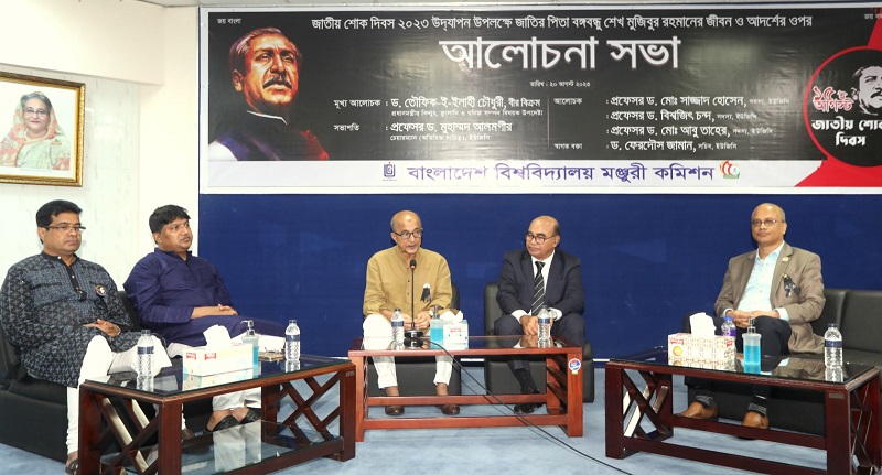 জাতীয় শোক দিবস উদযাপন উপলক্ষ্যে জাতির পিতা বঙ্গবন্ধু শেখ মুজিবুর রহমানের জীবন ও আদর্শের ওপর এক আলোচনা সভায় মুখ্য আলোচক হিসেবে দেওয়া বক্তব্যে তিনি এ আহ্বান জানান। ইউজিসি অফিসার্স অ্যাসোসিয়েশন ও কর্মচারী ইউনিয়নের যৌথ উদ্যোগে রবিবার (২০ আগস্ট) ইউজিসি অডিটোরিয়ামে এই অনুষ্ঠান আয়োজন করা হয়।