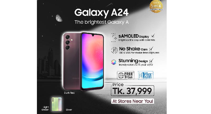 একই প্রাইস-রেঞ্জের ফোনগুলোর মধ্যে ব্যবহারোপযোগিতা আর আকর্ষণীয় ফিচারের কারণে গ্যালাক্সি এ সিরিজের হ্যান্ডসেটগুলো অন্যতম জনপ্রিয় স্মার্টফোনে পরিণত হয়েছে। বিগত বছরগুলোতে নানান অফার নিয়ে এসেছে এই সিরিজের ফোনগুলো, এরই ধারাবাহিকতায় এবার নিয়ে আসা হয়েছে নতুন গ্যালাক্সি এ২৪। ডিভাইসটির মূল্য নির্ধারণ করা হয়েছে মাত্র ৩৭,৯৯৯ টাকা।