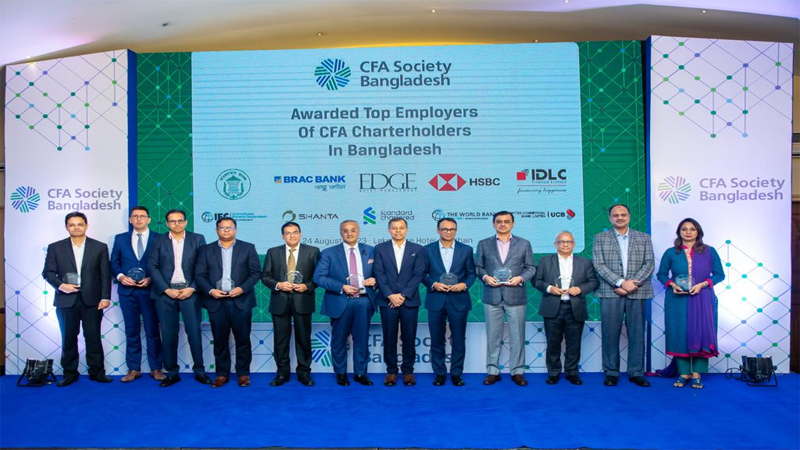 পুরস্কারপ্রাপ্ত প্রতিষ্ঠাগুলো হলো: বাংলাদেশ ব্যাংক, ব্র্যাক ব্যাংক লিমিটেড, এডজ এএমসি লিমিটেড, এইচএসবিসি বাংলাদেশ, আইডিএলসি ফাইন্যান্স লিমিটেড, ইন্টারন্যাশনাল ফাইন্যান্স কর্পোরেশন (আইএফসি), শান্তা ক্যাপিটাল মার্কেট, স্ট্যান্ডার্ড চার্টার্ড ব্যাংক বাংলাদেশ, বিশ্ব ব্যাংক এবং ইউনাইটেড কমার্সিয়াল ব্যাংক পিএলসি। সিএফএ সোসাইটি বাংলাদেশের প্রেসিডেন্ট শাহীন ইকবাল, সিএফএ এসময় শীর্ষ নিয়োগকারীদের হাতে পুরস্কার তুলে দেন।