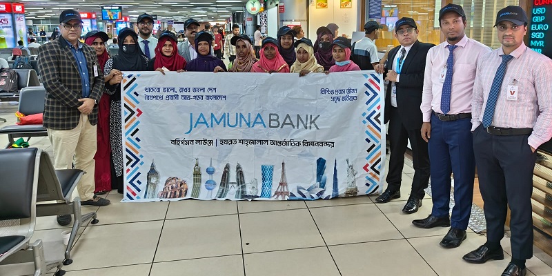 বাংলাদেশ ব্যাংকের ফাইন্যান্সিয়াল ইনক্লুশন ডিপার্টমেন্টের নির্দেশনা অনুযায়ী, সম্প্রতি যমুনা ব্যাংক লিমিটেডের আয়োজনে হযরত শাহজালাল আন্তর্জাতিক বিমানবন্দরের আন্তর্জাতিক প্রস্থান/বর্হিগমন লাউঞ্জে প্রবাসগামী কর্মীদের আর্থিক সাক্ষরতা সম্পর্কে সচেতন করার জন্য একটি অনুষ্ঠানের আয়োজন করা হয়েছে।