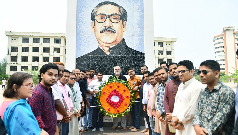 বঙ্গবন্ধু শেখ মুজিবুর রহমানের ৪৮তম শাহাদাতবার্ষিকী ও জাতীয় শোক দিবসের মাসব্যাপী কর্মসূচির সমাপনী দিনে আজ (৩১ আগস্ট) নোয়াখালী বিজ্ঞান ও প্রযুক্তি বিশ্ববিদ্যালয়ে (নোবিপ্রবি) জাতির পিতার ম্যুরালে শ্রদ্ধা নিবেদন করেছেন নোবিপ্রবির উপাচার্য অধ্যাপক ড. মো: দিদার-উল-আলম। এসময় উপস্থিত ছিলেন নোবিপ্রবি কোষাধ্যক্ষ অধ্যাপক ড. নেওয়াজ মোহাম্মদ বাহাদুর।