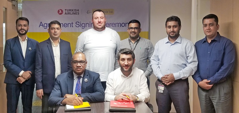 চুক্তি স্বাক্ষর করেন ইবিএল উপ-ব্যবস্থাপনা পরিচালক এবং রিটেইল ও এসএমই ব্যাংকিং প্রধান এম. খোরশেদ আনোয়ার এবং টার্কিশ এয়ারলাইন্সের মহাব্যবস্থাপক-বাংলাদেশ এমরাহ কারাকা।