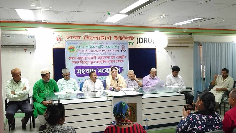 শেরে বাংলা এ কে ফজলুল হকের ঐতিহাসিক দল কৃষক শ্রমিক পার্টির নতুন কমিটি ঘোষণা করা হয়েছে। শনিবার (২ আগস্ট) ঢাকা রিপোটার্স ইউনিটিতে (ডিআরইউ) পার্টির সংবিধান সম্মেলনে কমিটির নাম ঘোষণা করেন শেরেবাংলা এ কে ফজলুল হকের নাতনি ও কৃষক শ্রমিক পার্টির সভাপতি ফারহনাজ হক চৌধুরী।