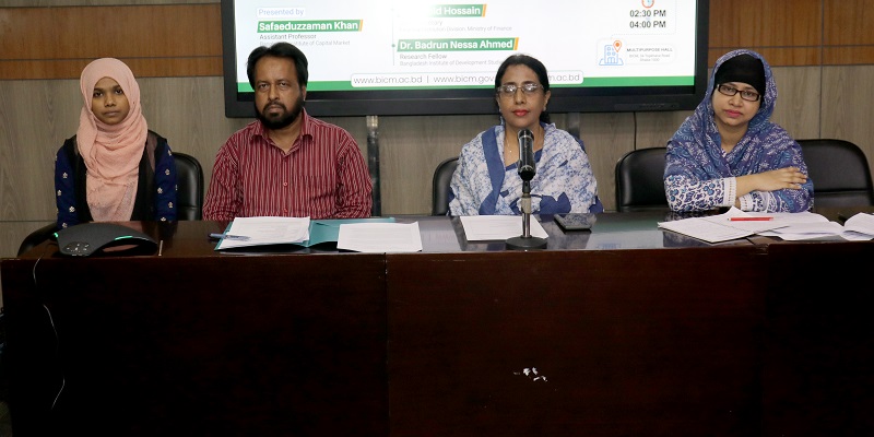 ইন্সটিটিউটের নির্বাহী প্রেসিডেন্ট অধ্যাপক ড. মাহমুদা আক্তারের সভাপতিত্বে অনুষ্ঠিত উক্ত সেমিনারে আলোচক হিসেবে উপস্থিত ছিলেন ঢাকা বিশ্ববিদ্যালয়ের অর্থনীতি বিভাগের অধ্যাপক ড. মোহাম্মদ শাহাদাত হোসাইন সিদ্দিকী, অর্থ মন্ত্রণালয়ের আর্থিক প্রতিষ্ঠান বিভাগের যুগ্মসচিব ড. নাহিদ হোসেন ও বাংলাদেশ ইন্সটিটিউট অব ডেভেলপমেন্ট স্টাডিজ’র রিসার্চ ফেলো ড. বদরুন নেসা আহমেদ। বিআইসিএম’র প্রভাষক এস এম কালবীন ছালিমা সেমিনারটি সঞ্চালনা করেন।