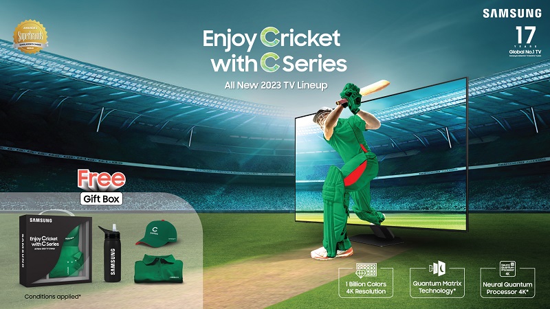 বিশ্বকাপের উত্তেজনায় মেতেছে সারা দেশ। এই উত্তেজনাটি কয়েক গুণ বাড়াতে দেশের সকল ক্রিকেটপ্রেমীদের জন্য স্যামসাং নিয়ে এসেছে এর নতুন টেলিভিশন সিরিজ – সি-সিরিজ। অত্যাধুনিক প্রযুক্তিতে তৈরি এ সিরিজের টেলিভিশনগুলো ক্রেতাদের প্রাণবন্ত অভিজ্ঞতা নিশ্চিত করে ক্রিকেট পিচকে সরাসরি নিয়ে আসবে ঘরের মধ্যে। ১০ সেপ্টেম্বর থেকে বাজারে পাওয়া যাচ্ছে স্যামসাংয়ের সম্প্রতি উন্মোচন করা এ টেলিভিশন সিরিজ।