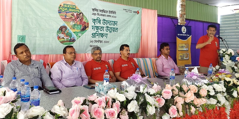 ইউনাইটেড কমার্শিয়াল ব্যাংক পিএলসি (ইউসিবি) সামাজিক দায়িত্বের অংশ হিসেবে কৃষিখাতে সহায়তা প্রদানের জন্য এগ্রো-সিএসআর প্রকল্প ২০২৩ ‘ভরসার নতুন জানালা’ প্রকল্পের উদ্যোগে দিনব্যাপী কিশোরগঞ্জ জেলার কৃষি উদ্যোক্তাদের নিয়ে এক প্রশিক্ষণ-কর্মসূচি অনুষ্ঠিত হয়। আজ (১২ সেপ্টেম্বর) কিশোরগঞ্জের নিহাল পার্কে এই প্রশিক্ষণে কিশোরগঞ্জ জেলার ১৩টি উপজেলার প্রায় ৩৭০জন কৃষি উদ্যোক্তা উপস্থিত ছিলেন।