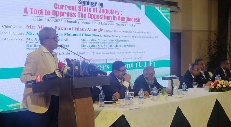 বৃহস্পতিবার (১৪ সেপ্টেম্বর) রাজধানীর একটি হোটেলে এক সেমিনারে তিনি এ কথা বলেন। ইউনাইটেড ল‘ইয়ার্স ফ্রন্টের উদ্যোগে ‘কারেন্ট স্ট্যাইট অব জুডিশিয়ারি : এ টুল টু অপরেস দ্য অপজিশন ইন বাংলাদেশ’ শীর্ষক এই সেমিনার হয়। সেমিনারে মূল প্রবন্ধ পাঠ করেন ইউনাইটেড ল‘ইয়ার্স ফ্রন্টের কো-কনভেনর অ্যাডভোকেট সুব্রত চৌধুরী।