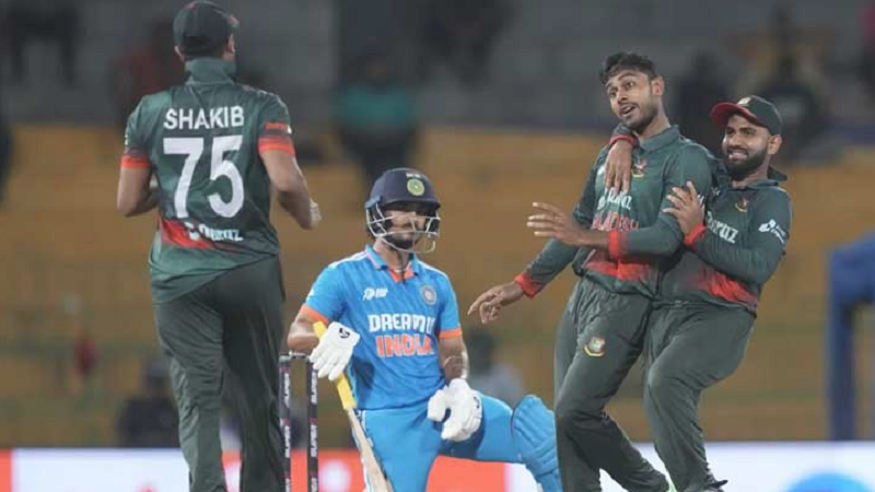 ভারতের বিপক্ষে শ্বাসরুদ্ধকর লড়াইয়ে জয় পেল টাইগাররা। শুক্রবার শ্রীলংকার রাজধানী কলম্বোর প্রেমাদাসা স্টেডিয়ামে আগে ব্যাট করে ৮ উইকেটে ২৬৫ রান করে বাংলাদেশ। টার্গেট তাড়ায় ওপেনার শুভমান গিলের সেঞ্চুরির পরও ২৫৯ রানে অলআউট হয় ভারত। ৬ রানে জয় পায় টাইগাররা।