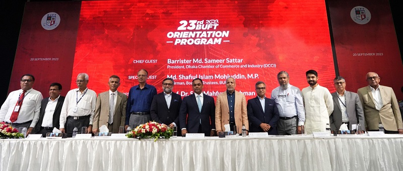 শিক্ষা উদ্যোক্তা, টেন মিনিট স্কুলের প্রতিষ্ঠাতা ও সিইও আয়মান সাদিক অনুষ্ঠানে বিশেষ অতিথি হিসেবে উপস্থিত ছিলেন। আরএমজি সেক্টরে শীর্ষস্থানীয় শিক্ষা প্রতিষ্ঠান হিসেবে প্রতিষ্ঠিত করার জন্য বিইউএফটি’র প্রচেষ্টার প্রশংসা করেন তিনি। বিশ্ববিদ্যালয়ের উপউপাচার্য প্রফেসর ড. ইঞ্জি. আয়ুব নবী খান স্বাগত বক্তব্য প্রদান করেন। তিনি শিক্ষার্থীদের চতুর্থ শিল্প বিপ্লবের প্রযুক্তিতে পারদর্শী হওয়ার আহ্বান জানান।